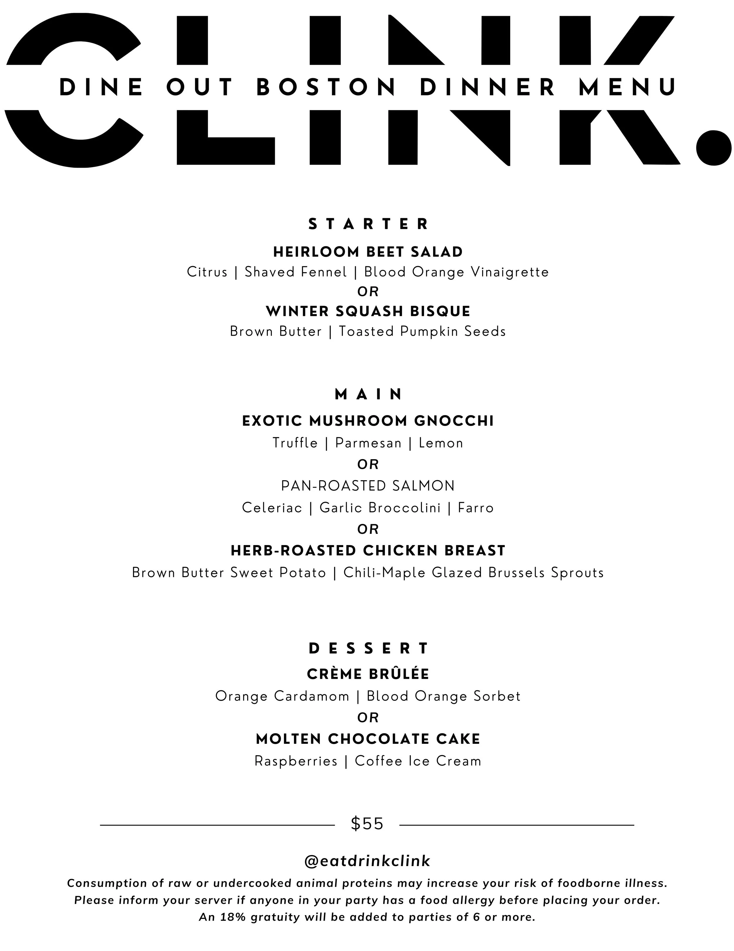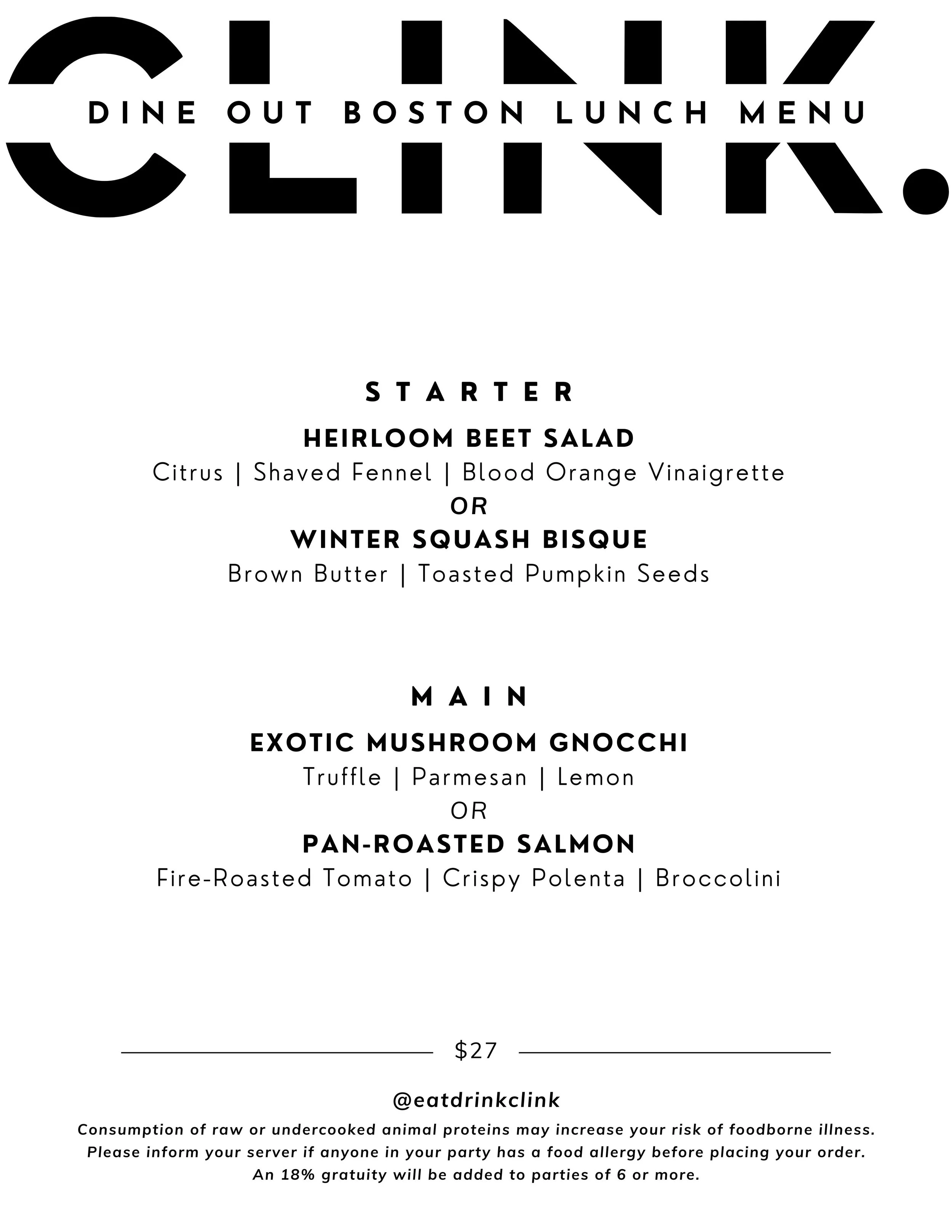 Dine Out Boston lunch and dinner menu available February 22 – March 7, 2026 except on Saturdays
